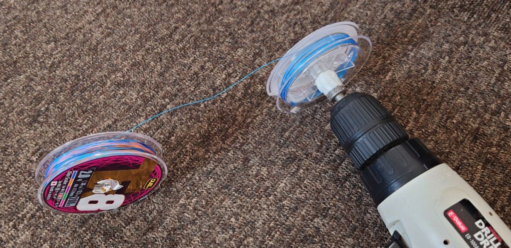 同様に電動ドライバーに空スプールをセットして、①で回収したラインを巻き取ります。
