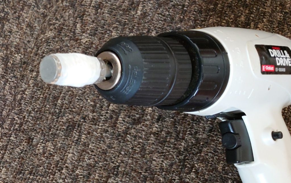 私の場合は回転ヤスリが偶然スプール径に近かったのでテープを巻いて使ってます。ドライバーにティッシュ等を巻いてもできますが調整に時間がかかったりするので、PROX ラインリムーバー電動ドリル用ビットEZのような便利なものもあります。